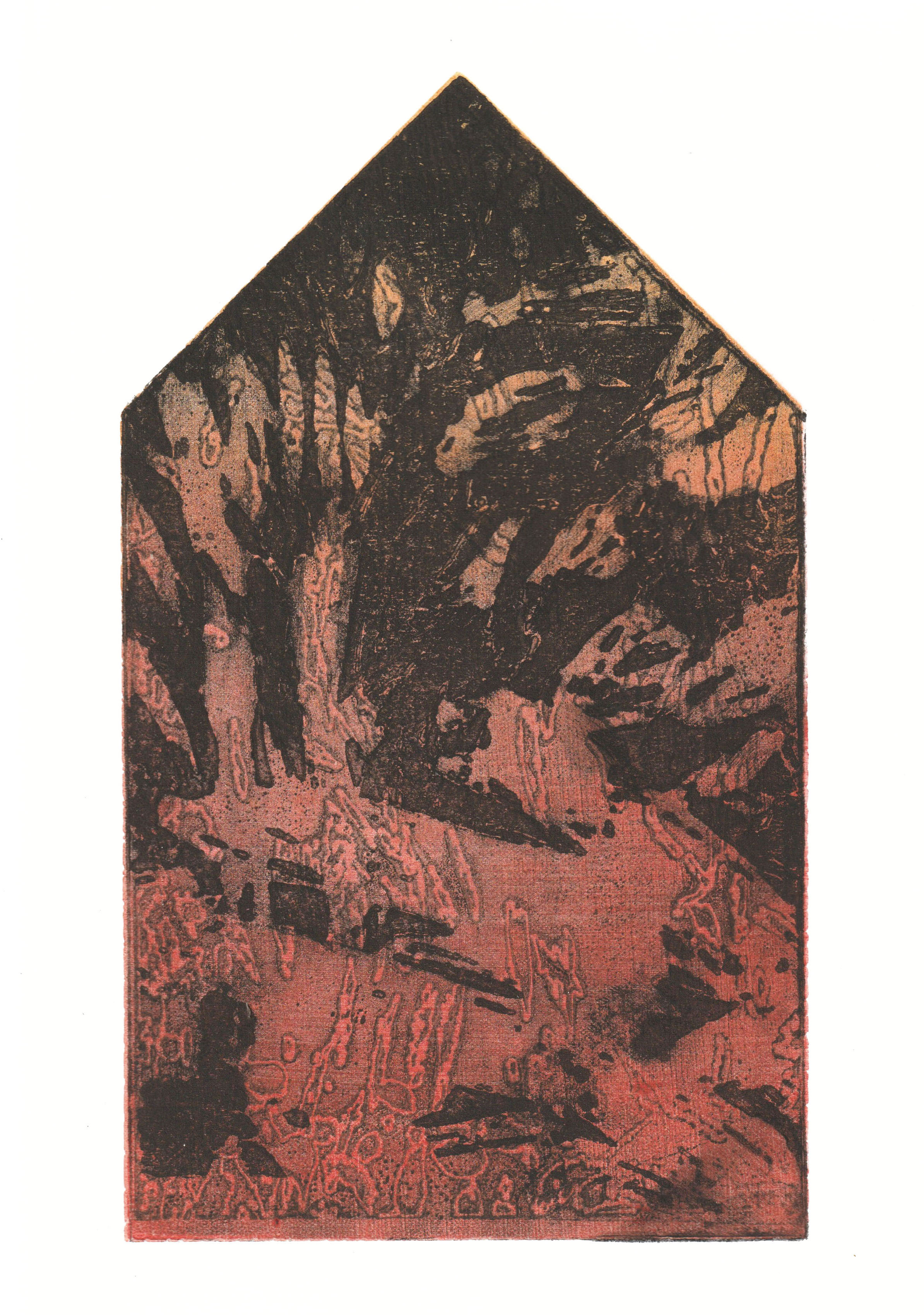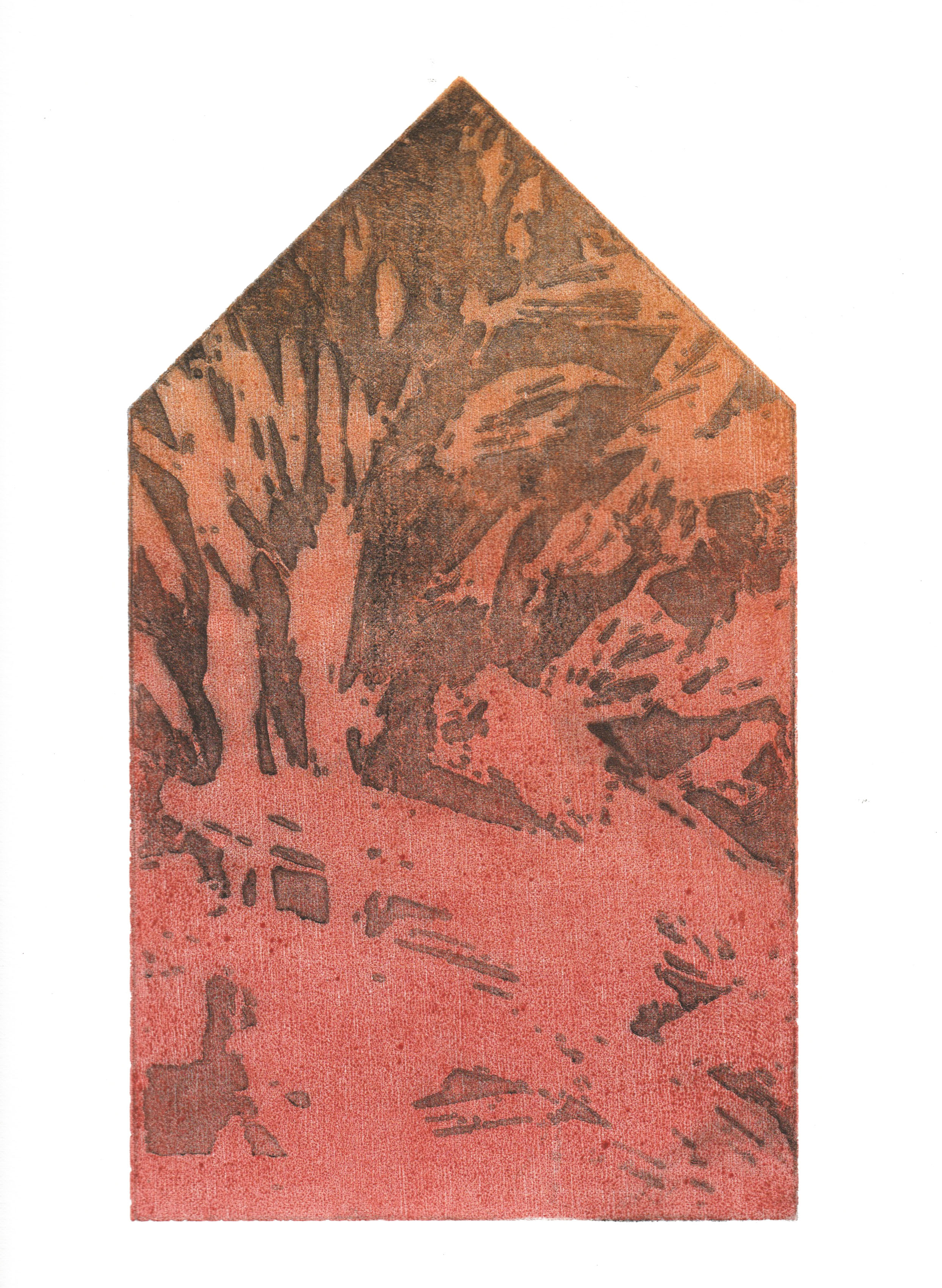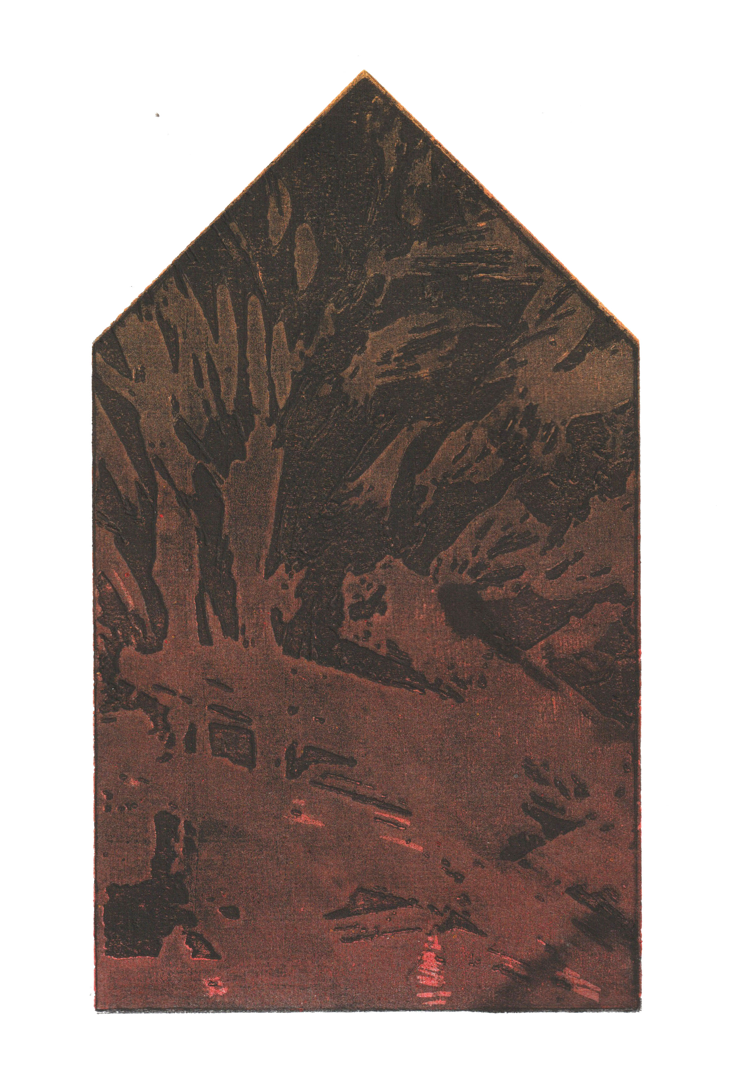 greenhouse, graficzny cykl intermedialny - drzeworyt CNC, grawerowany biomateriał, druk na różnych podłożach, pigmenty naturalne/ intermedia graphic series - CNC woodcut, engraved biomaterial, print on various substrates, natural pigments, 15x26 cm, 2025