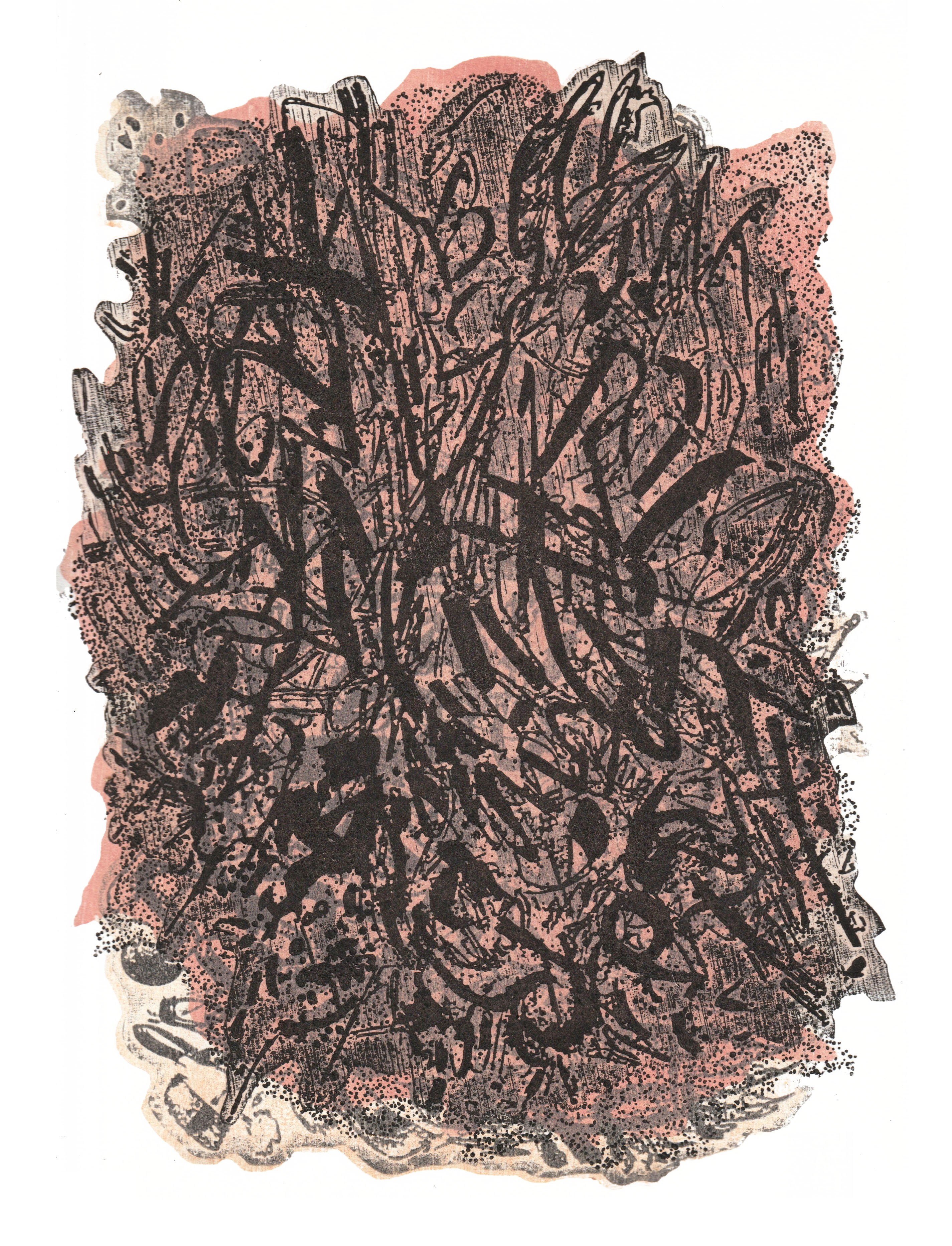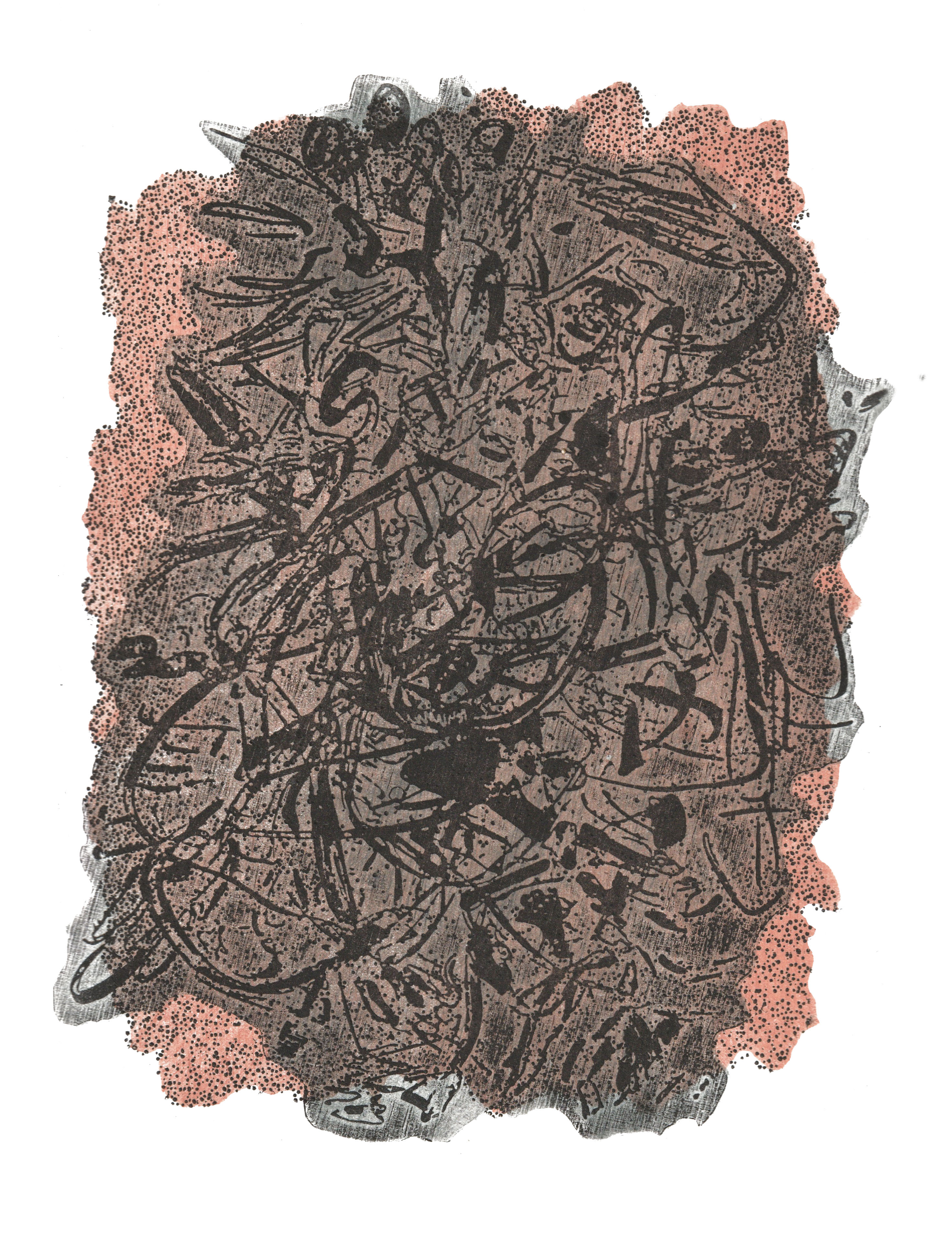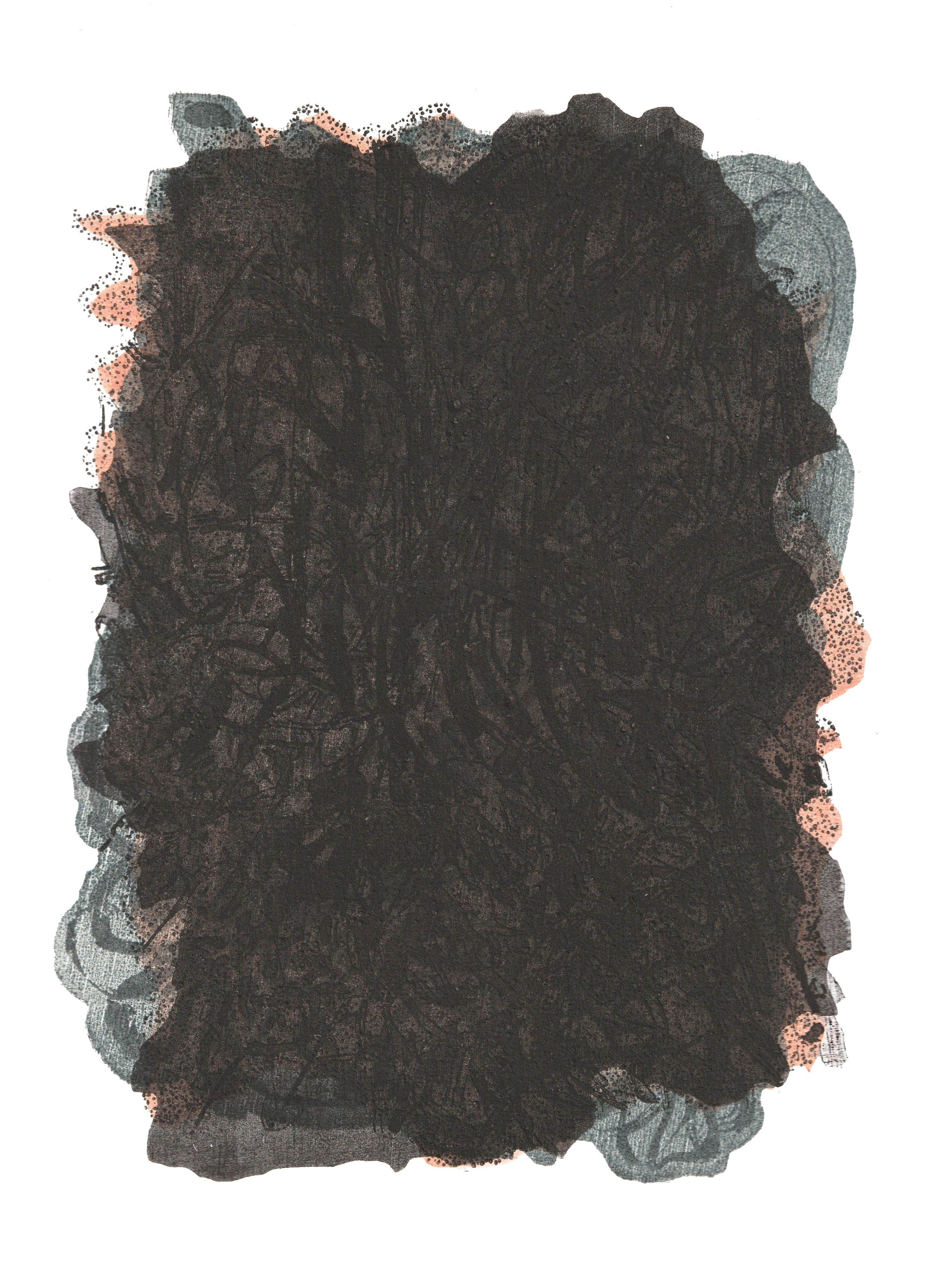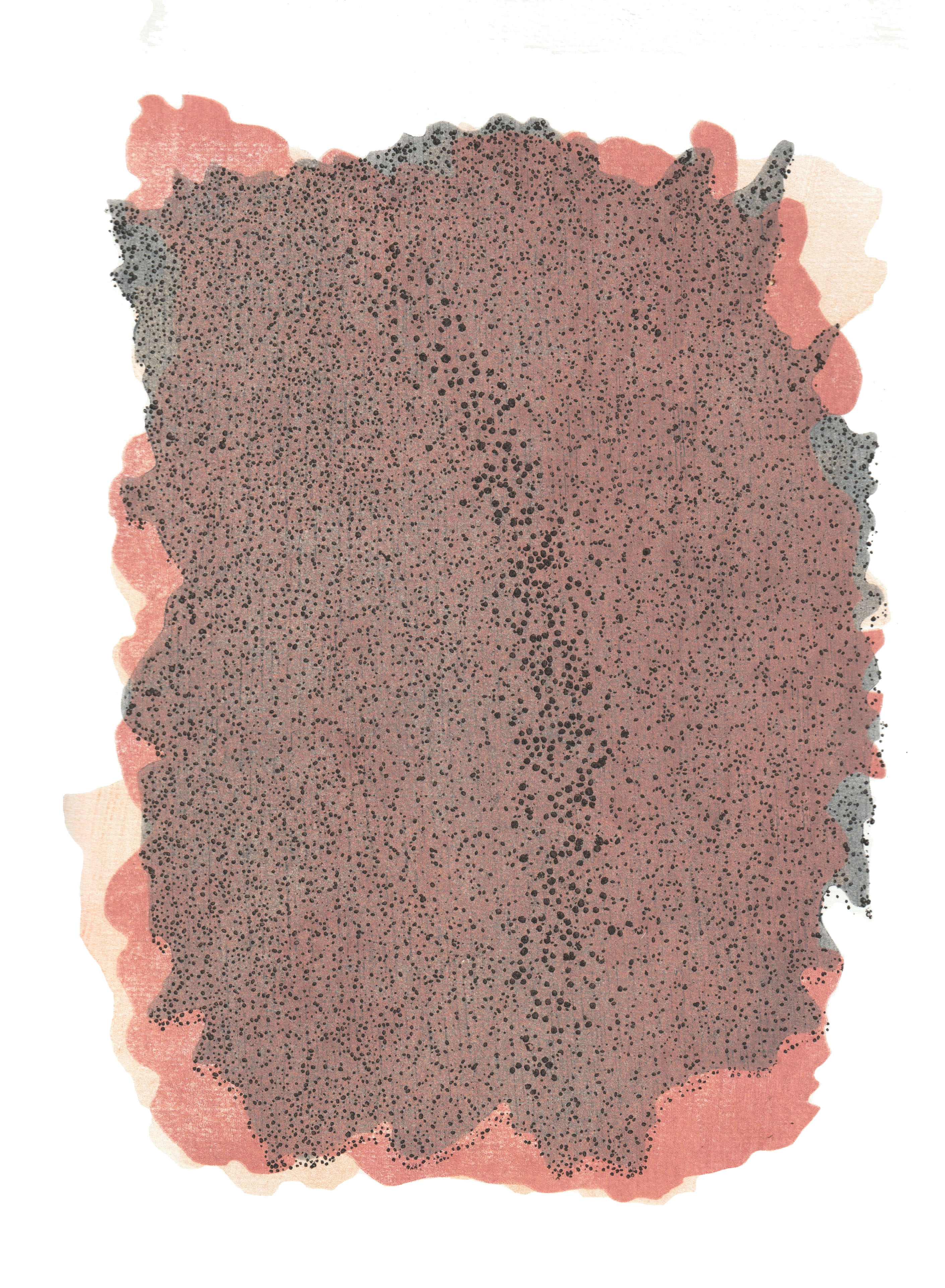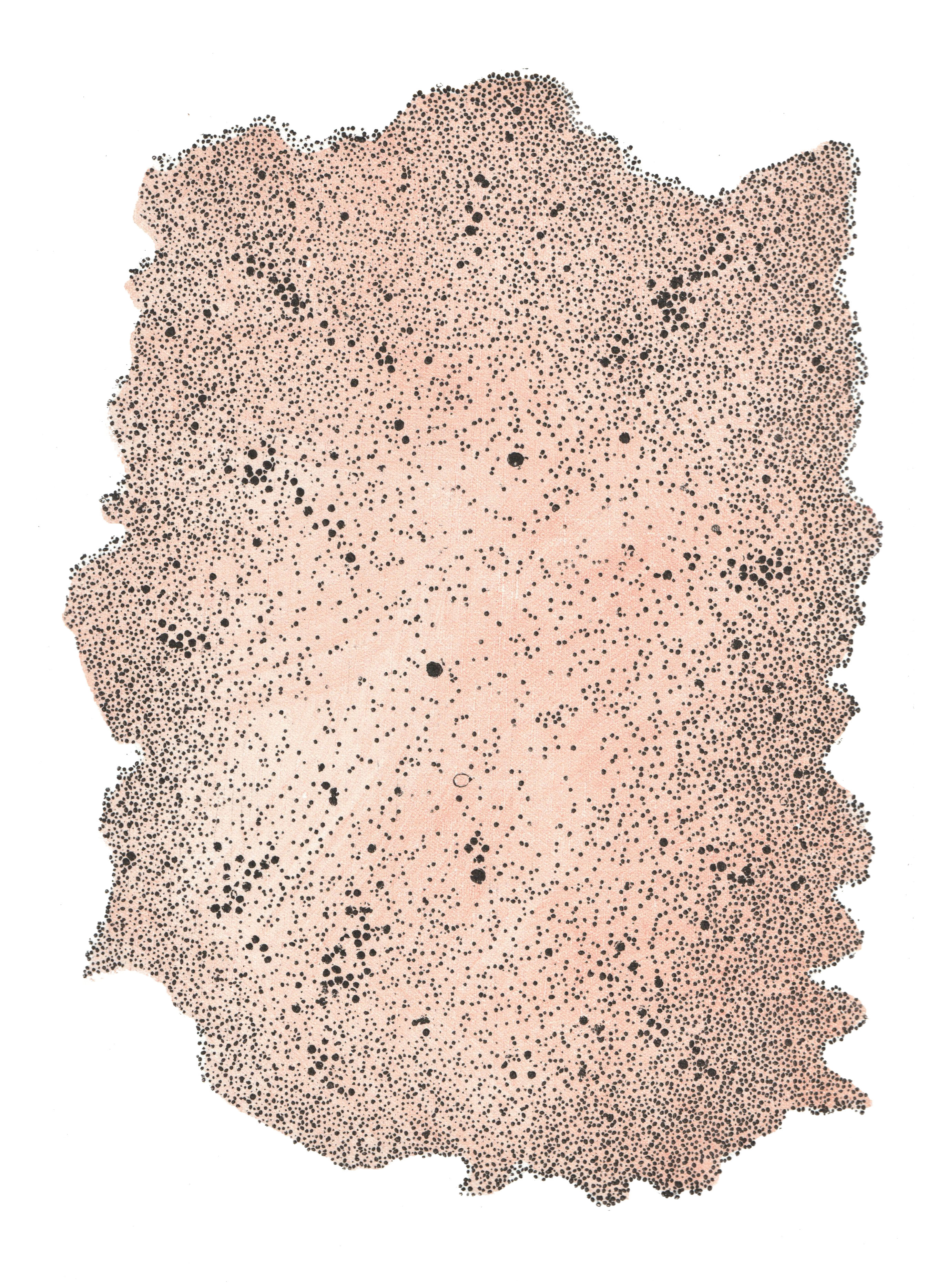 microcosmos (soup of the day), linocut on filter paper, 16 x 40x40 cm, 2014