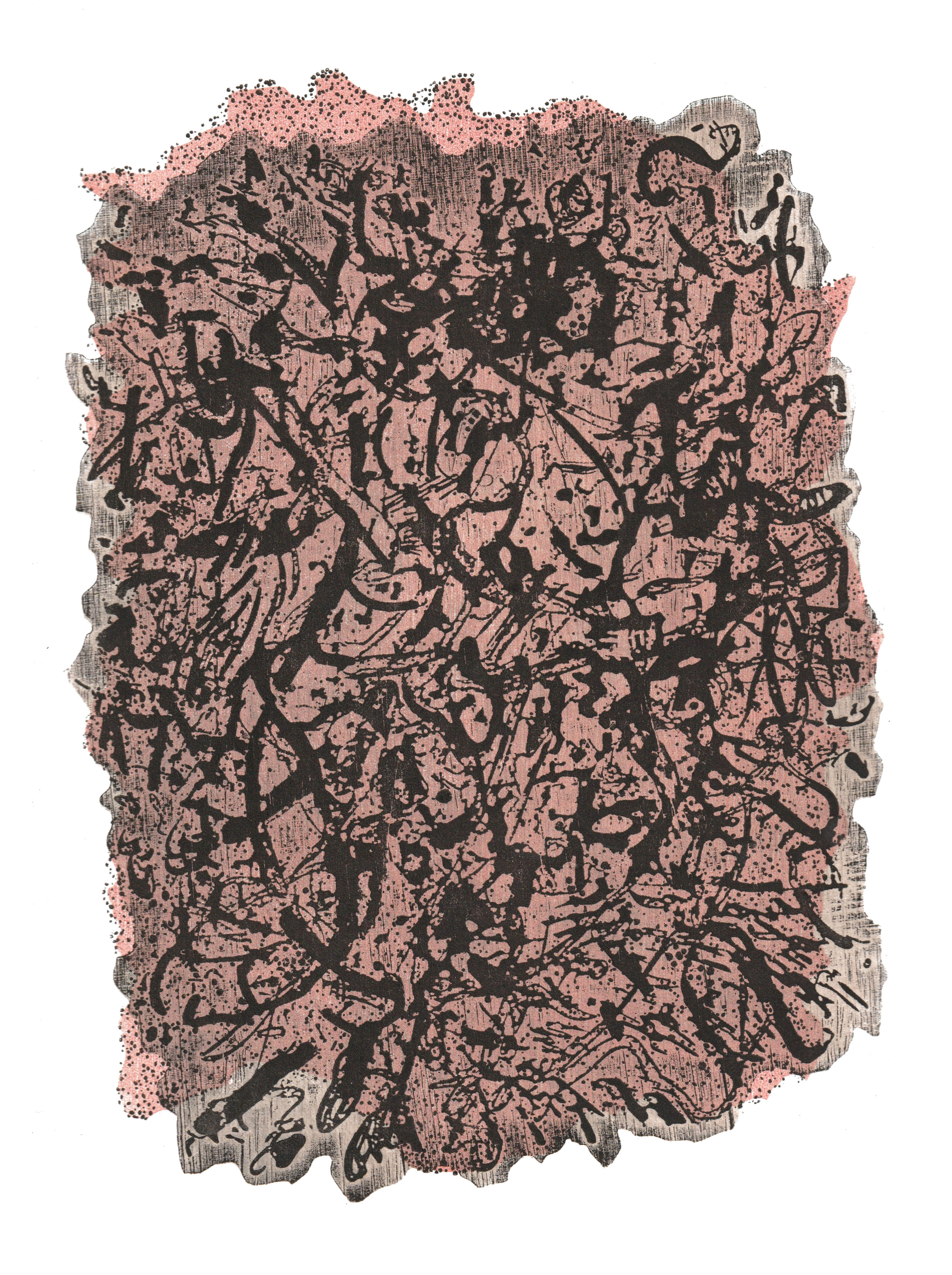mikrokosmos (zupa dnia), linoryt na bibule filtracyjnej, 16 x 40x40 cm, 2014