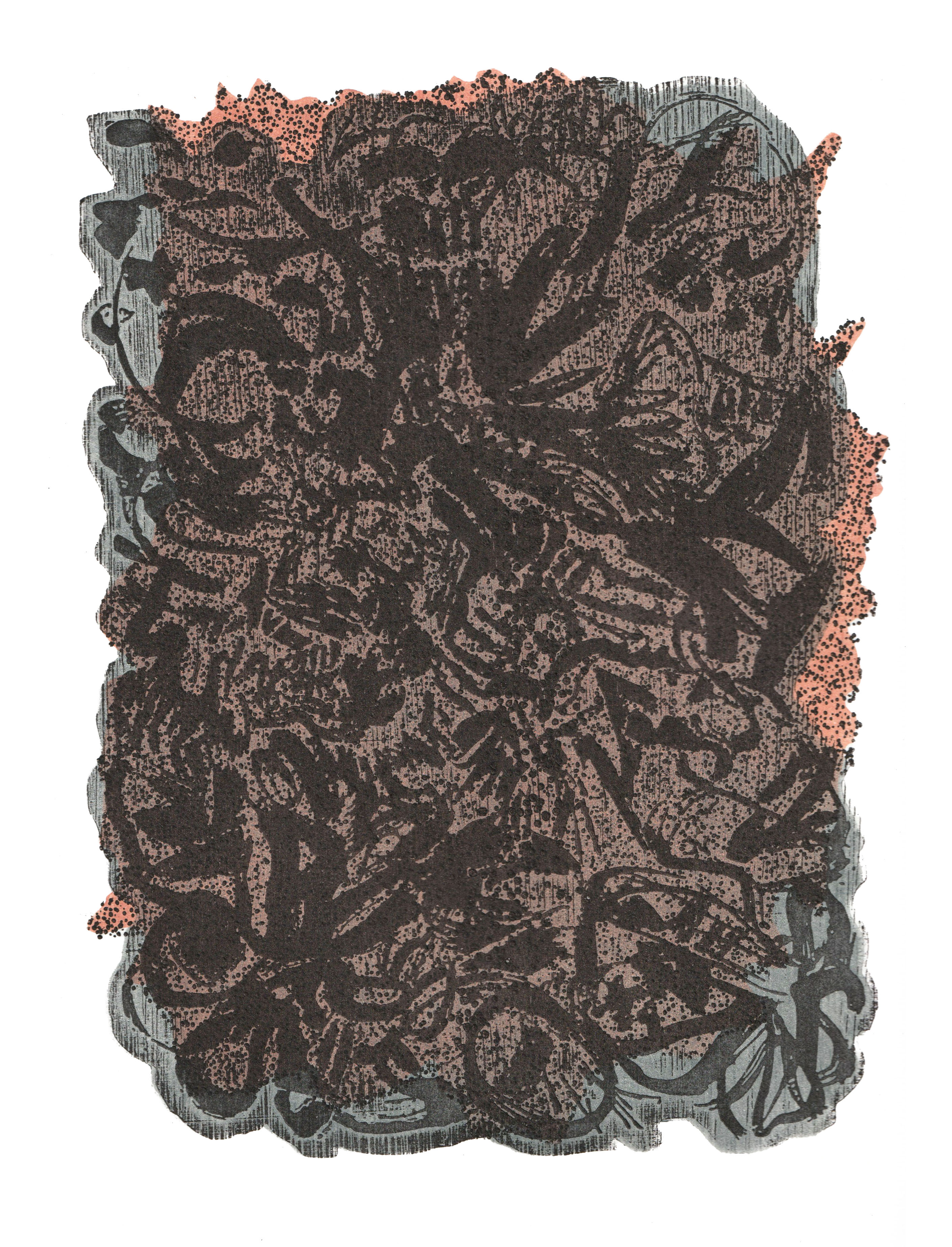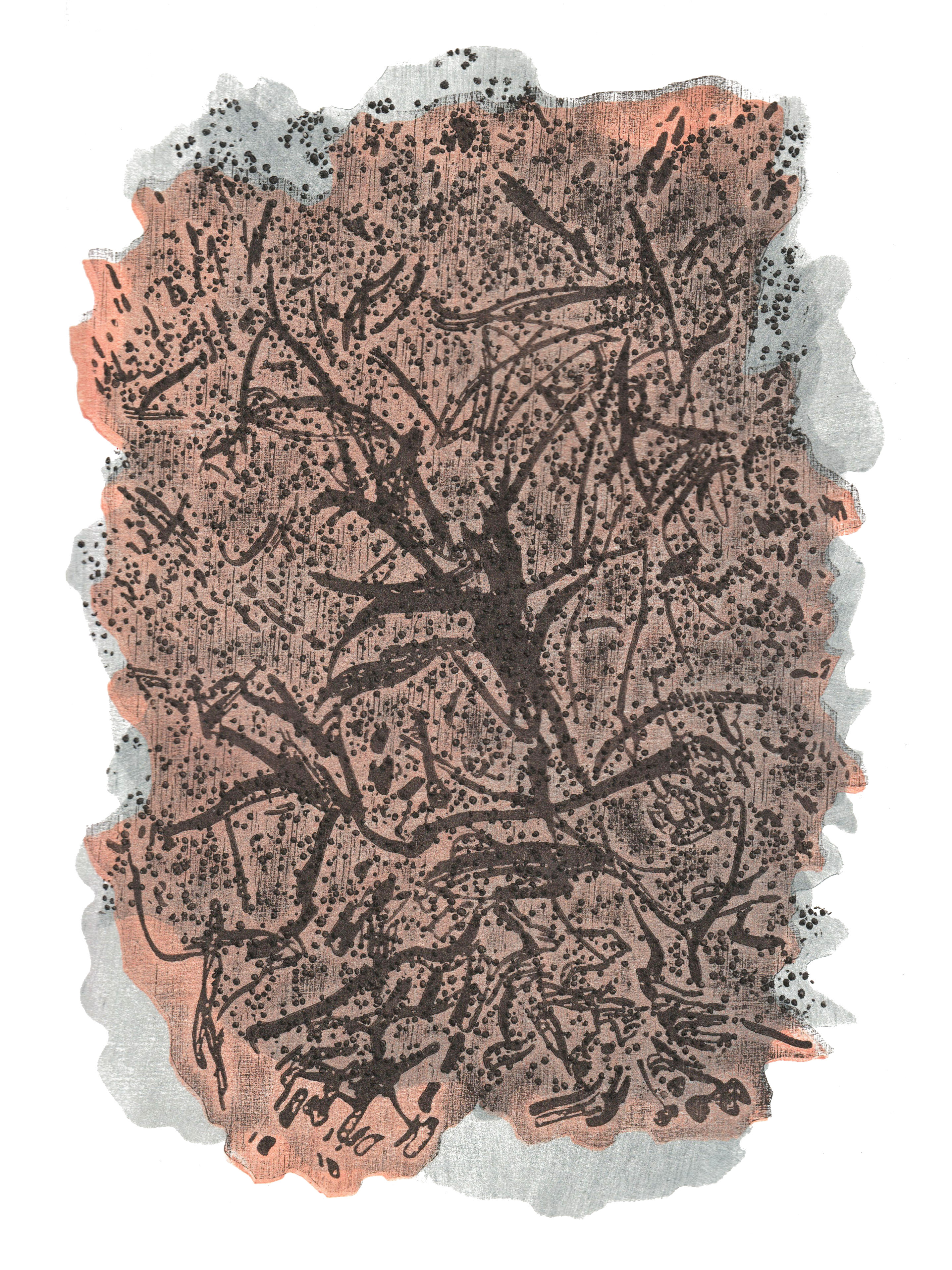 układ współczulny/ sympathetic nervous system, linoryt, kolagraf / linocut, collagraph, 2019, Honorary Medal at the 17th International Triennial of Small Graphic Forms, Lodz-Poland 2020